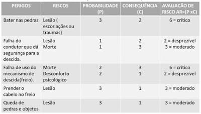 Com os perigos, riscos, probabilidades e conseqüências identificadas (o que fizemos anteriormente) vamos agora avaliar os riscos multiplicando a probabilidade x conseqüência.