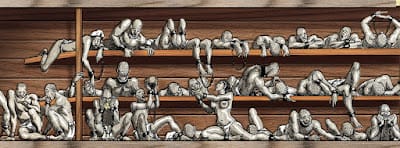 Os traficantes dividiam o porão em três patamares, com altura de menos de meio metro cada um. Presos pelos pés, mais de 500 escravos se espremiam deitados ou sentados. “Ficavam como livros numa estante”, disse o traficante Joseph Cliffer