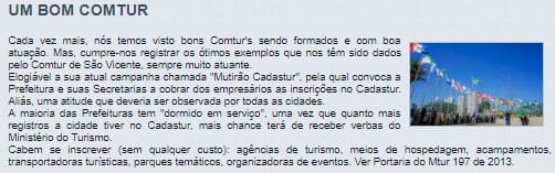 COMTUR de São Vicente: É Destaque no Boletim da AMITUR (Associação Brasileira dos Municípios de Interesse Cultural e Turístico).