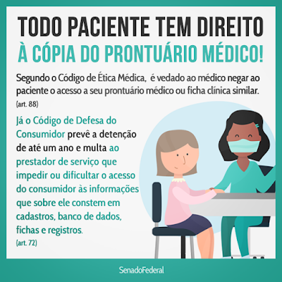 Segundo o Código de Ética Médica, é vedado ao médico negar ao paciente o acesso ao seu prontuário médico ou ficha clínica similar. (art.88) Já o Código de Defesa do Consumidor prevê a detenção de até um ano e multa ao prestador de serviço que impedir ou dificultar o acesso do consumidor às informações que sobre ele constem em cadastros, banco de dados, fichas e registros. (art.72).