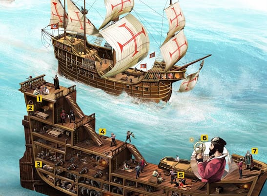 Apenas os mais graduados tinham o luxo de um quarto e uma cama. Os marinheiros dormiam sob o castelo da popa, a estrutura mais alta do navio. Como não cabia muita gente ali, o jeito era dormir no convés, ao relento, em frágeis colchões de palha. Os porões eram reservados para guardar água, mantimentos e munição.