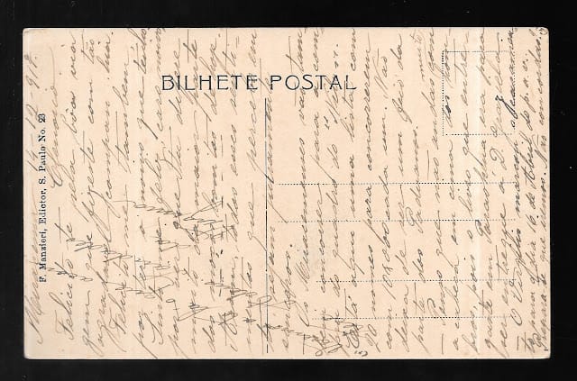 Cartão Postal Antigo São Vicente SP: (início séc. XX) Sítio no Itararé (circulado 1917) Verso.
