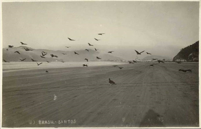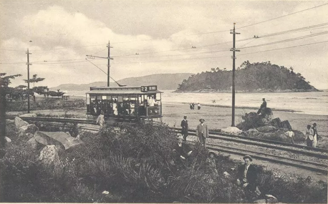 Foto Antiga São Vicente SP: Praia do Itararé nos anos de 1920, exatamente onde hoje circula o VLT Santos-São Vicente.