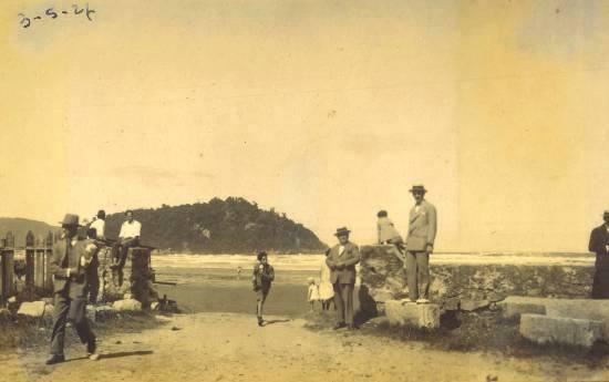 Foto Antiga São Vicente SP: Anos 20 no Itararé com a Ilha Porchat ao fundo.