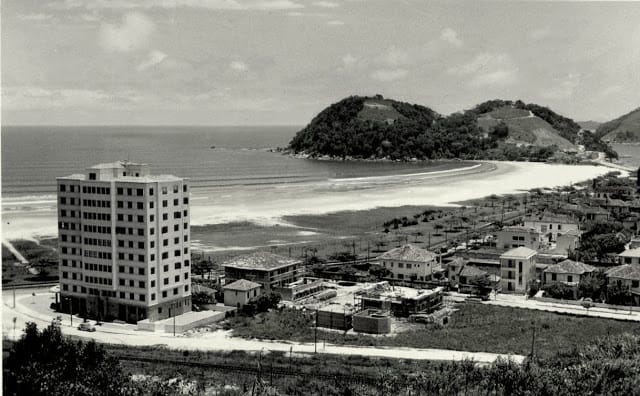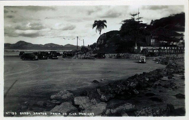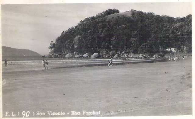 Foto Antiga São Vicente (1940), início da Praia do Itararé com a Ilha Porchat ao fundo. Local onde se encontra hoje o Ilha Porchat Clube.