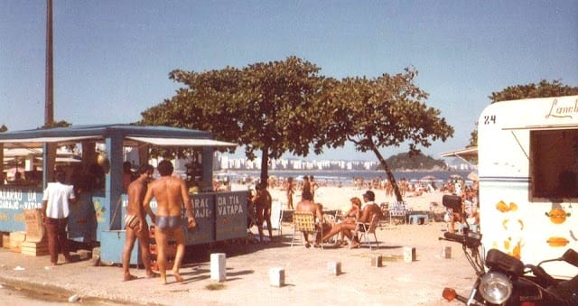 Foto Antiga São Vicente SP: (1979) Trailers de lanches na Praia do Itararé.