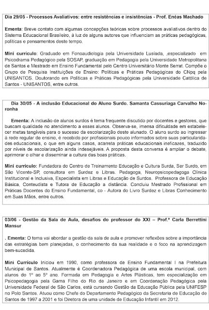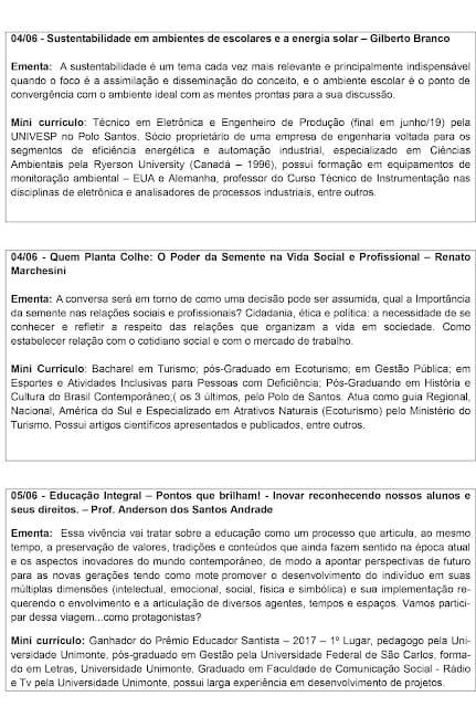 Escolha 1 ou mais  temas, leia no anexo as ementas e o mini currículo dos profissionais que dedicarão seu tempo para contribuir com seu conhecimento e agregar valor acadêmico e humano aos participantes.
