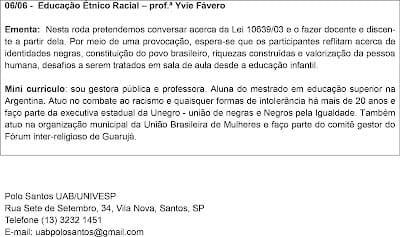 Palestra:  Polo Santos UAB/UNIVESP  – a partir das 19 horas.