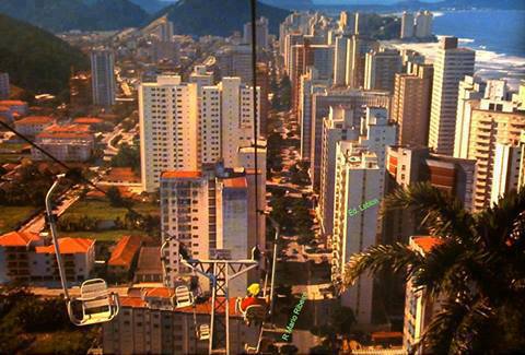 Vista do Morro do Pitiú, entre Pitangueiras e Astúrias. Lá havia um teleférico. Foto de 1976.