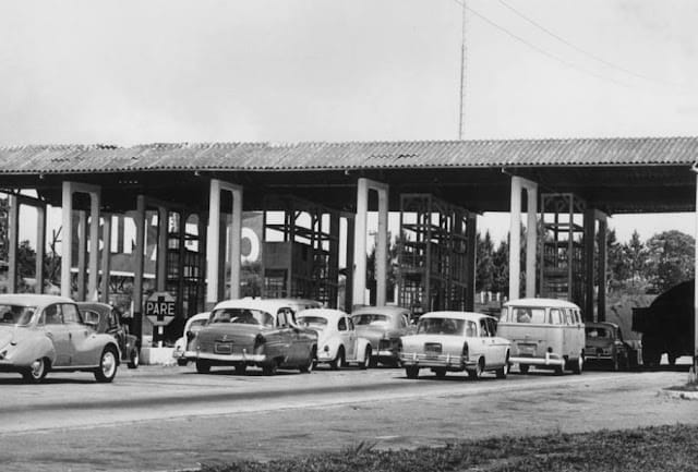 Foto Antiga Rodovia Anchieta fila do Pedágio na Via Anchieta década de 60 ou 70.
