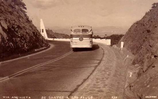 Foto Antiga Rodovia Anchieta Ônibus trafegando pela Via Anchieta.