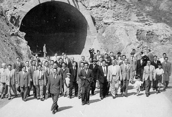 Transportadores rodoviários visitam as obras da Via Anchieta em agosto de 1946