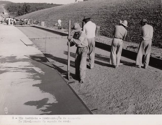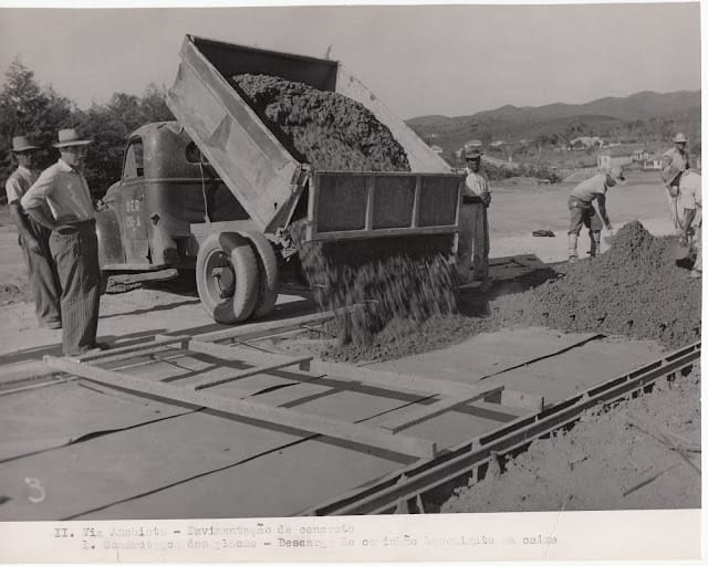 O boletim do DEI destaca que: “…a pavimentação da pista, que é a garantia de segurança do tráfego e da conservação de uma rodovia, seguiu o método de preparo prévio e compressão da base por meio de fôrmas de ferro, dobras em “L”, com os bordos protegidos por cantoneiras, e do comprimento de 3 metros”, e continua”. O informativo ainda faz um minucioso relato de várias outras peculiaridades da pavimentação da Anchieta, mas são dados mais técnicos da obra e, para os engenheiros de plantão, recomendo a leitura do documento completo.