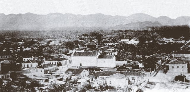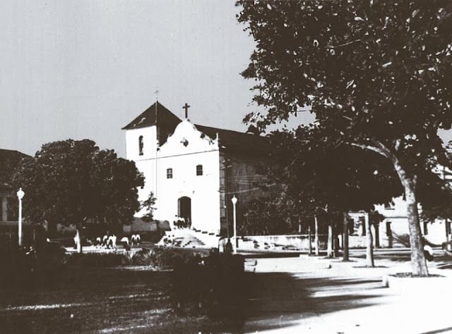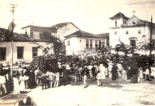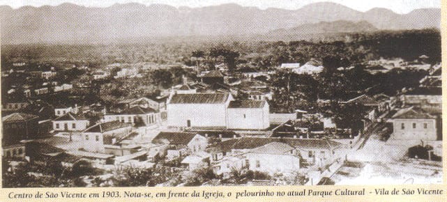 Foto Antiga São Vicente SP: Praça João Pessoa, em frente da Igreja Matriz (s.d.).