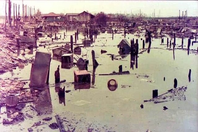 Foto Antiga Cubatão SP: Aspecto da Vila Socó após o incêndio de 1984.