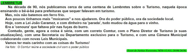 AMITUR: NOTAS DO TURISMO PAULISTA publicadas em 30 e 31 de agosto de 2019
