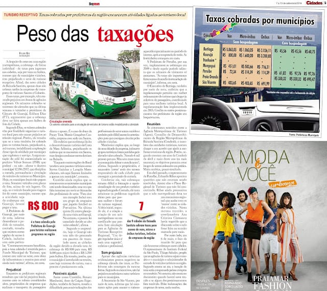 Segundo o empresário, hoje o Guarujá não tem sido tão procurado em pacotes de translado entre as cidades da região devido a elevada taxa de cobrança de R$ 800 para vans, R$ 1.600 para micro-ônibus e R$ 3.200 para ônibus.