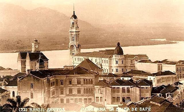 FOTO ANTIGA Centro de Santos, ao fundo a Bolsa do Café, início dos anos 20.