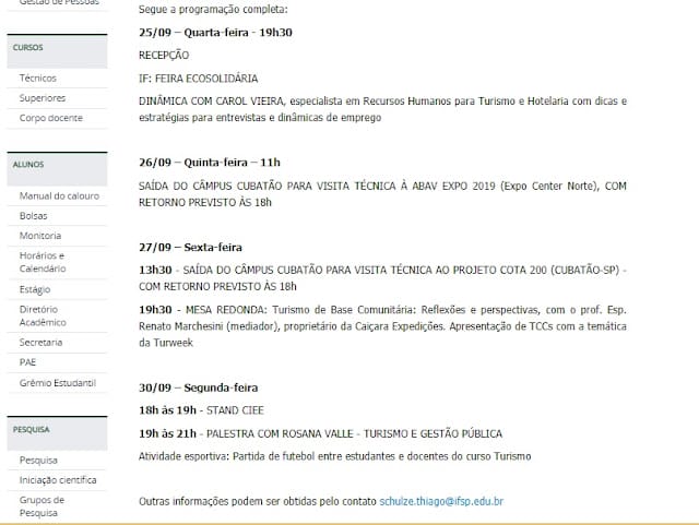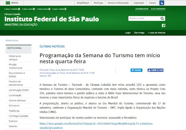 Semana do Turismo (Turweek) 2019 – Instituto Federal de São Paulo Campus Cubatão