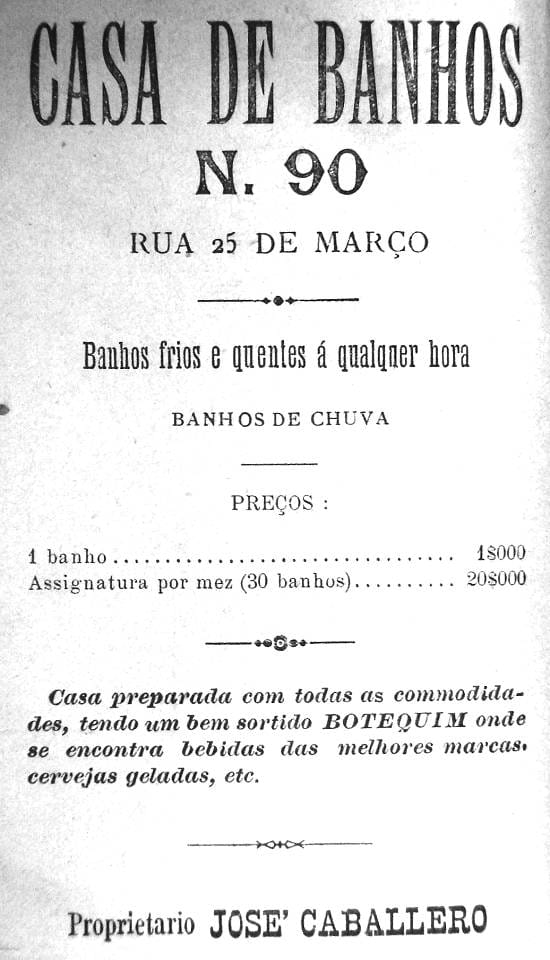 Anúncio da Casa de Banhos de José Caballero, em 1887