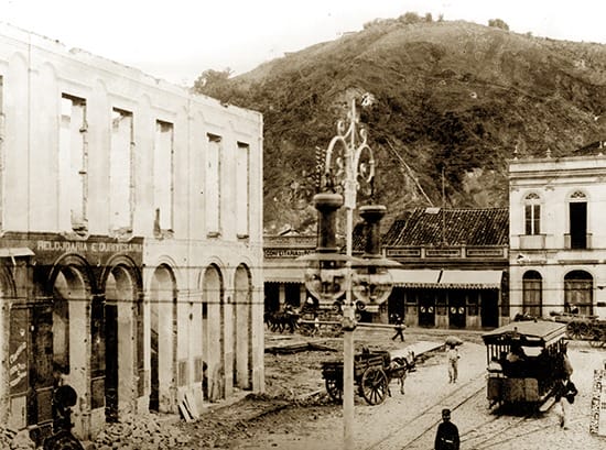 Foto Antiga Santos SP: Largo do Rosário. Primeiras Lâmpadas a Gás em Santos (s.d).