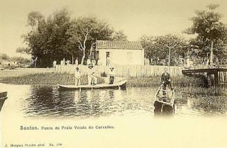 Cartão Postal Antigo Santos SP:  (primeira década do século XX), foto de José Marques Pereira, mostrando um ponto de referência dos santistas da época, a Venda do Carvalho.