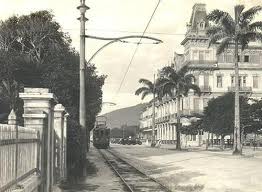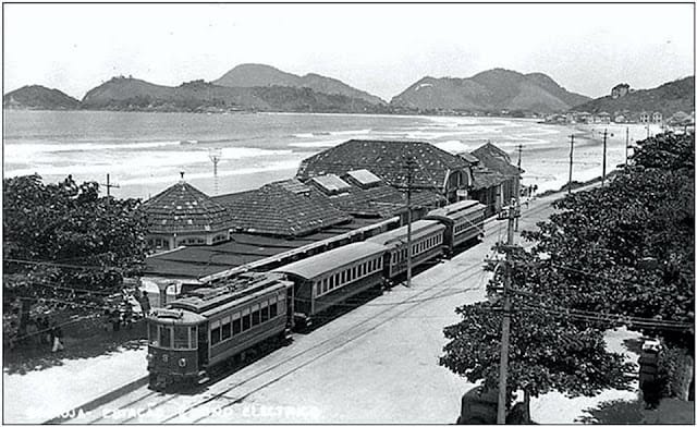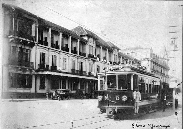 FOTO ANTIGA: Guarujá – Pitangueiras – Bonde e Hotel Grand La Plage 1932.