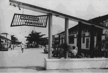 Foto Antiga Mongaguá SP: Vista da saída da estação de Mongaguá nos anos 1960.