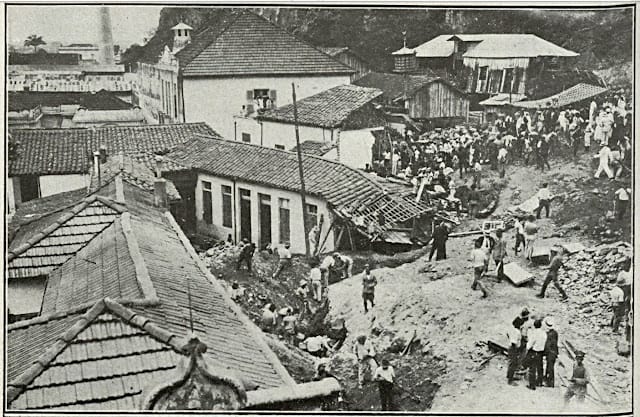 Foto Antiga Santos SP: Desabamento Monte Serrat (1928).