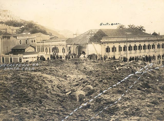 Da Santa Casa de Misericórdia desapareceram sob a terra o necrotério e a sala de cirurgias. O desastre que matou a enfermeira de nome Maria Brumen na hora e provocou um pânico sem precedentes no hospital, o que provocou uma movimentação intensa de profissionais de saúde correndo com centenas de doentes, que se espalharam aos gritos pelas imediações.