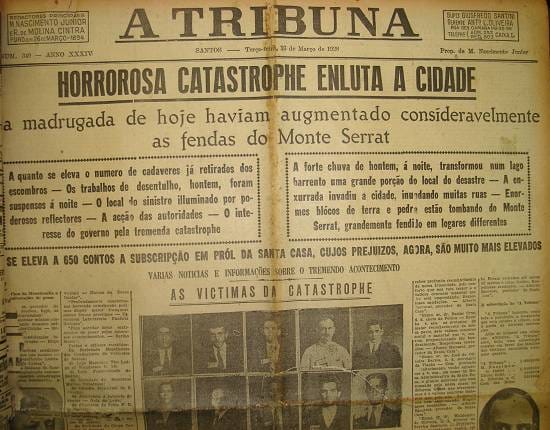 Em 10 de março de 1928, a cidade de Santos testemunhou um dos seus grandes acidentes, quando a face norte do Monte Serrat desmoronou sobre um grupo de casas e parte da antiga Santa Casa, causando muitas mortes.