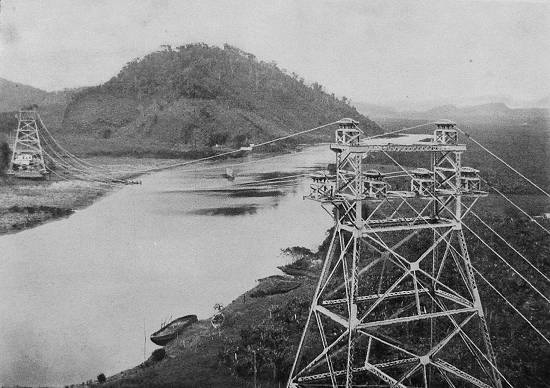FOTO ANTIGA: Canal de Bertioga, Linhão de Energia da Usina de Itatinga em Monte Cabrão Santos SP (1915).