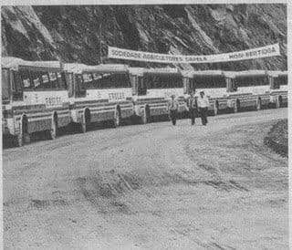 Foto Antiga Bertioga – Vez ou outra, ônibus atolavam na areia da praia. Sem rodovia, a praia era via expressa.