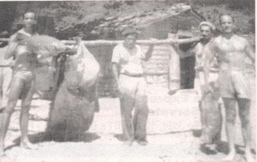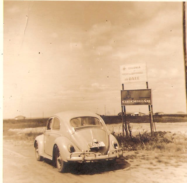 Foto Antiga Peruibe SP. Anos 1960. Na empoeirada esquina das avenidas São João e Padre Anchieta, eu e o Moacir de Castro Moura.