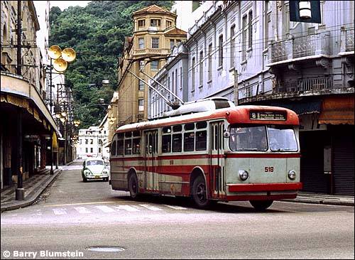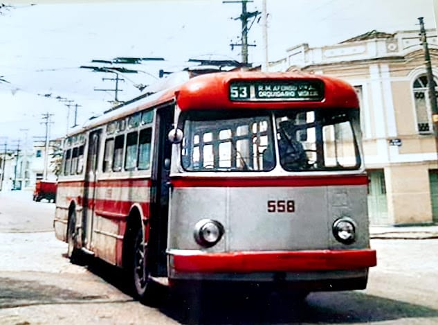 Foto Antiga Santos SP: Trólebus na rua D. Pedro com General Câmara (s.d.).