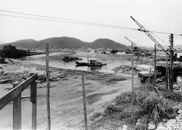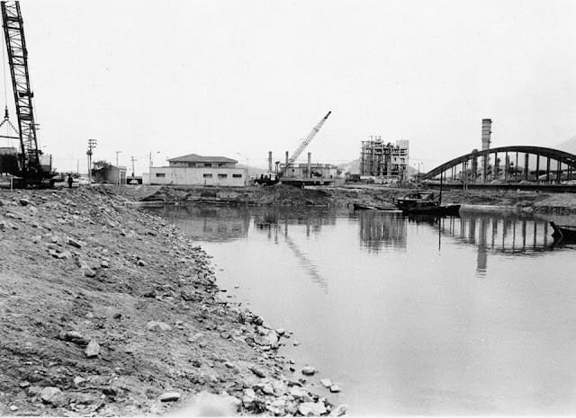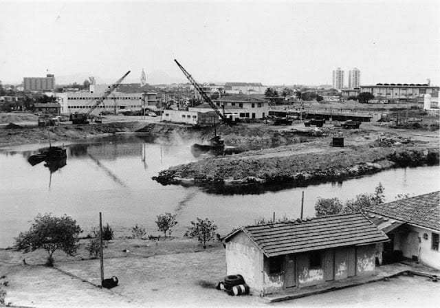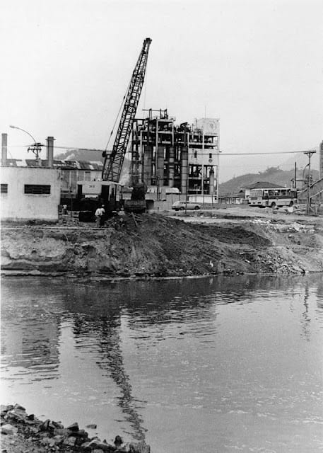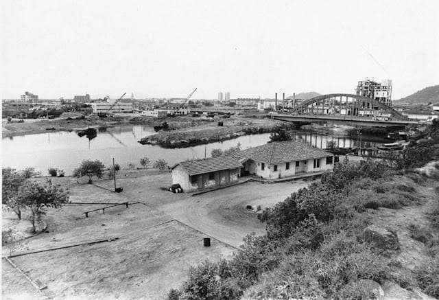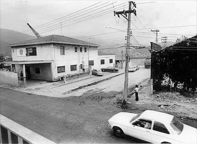 Foto Antiga Cubatão SP: Antiga delegacia de Cubatão que ficava no terreno que foi desapropriado para dar lugar a retificação do rio Cubatão em 1977.