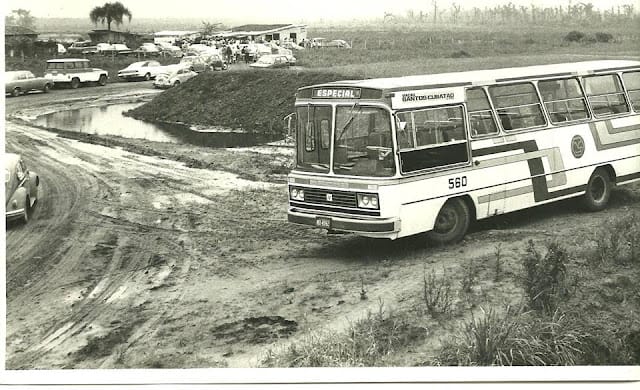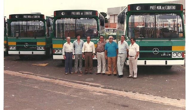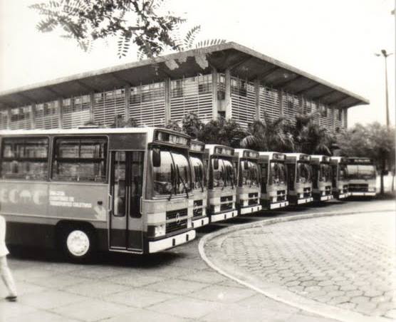 Foto Antiga Cubatão SP: Apresentação dos novos ônibus da ECTC nos anos 1980.