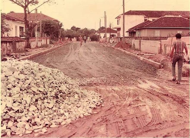 Foto Antiga Cubatão SP: Calçamento da rua Maranhão, década de 1970.