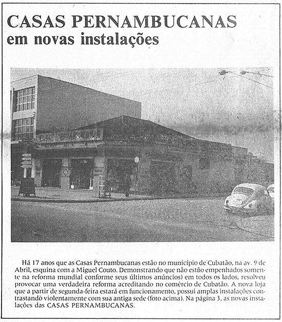 Foto Antiga Cubatão SP: Casas Pernambucanas e sua antiga localização em Cubatão. Publicado no semanário cubatense A Imprensa em 24 de agosto de 1975.