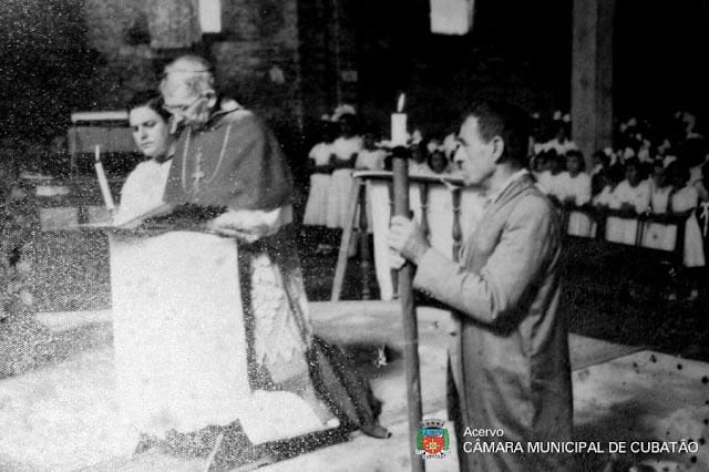 Foto Antiga Cubatão SP: Missa Celebrada por Dom Idílio José Soares em Cubatão, 1950.