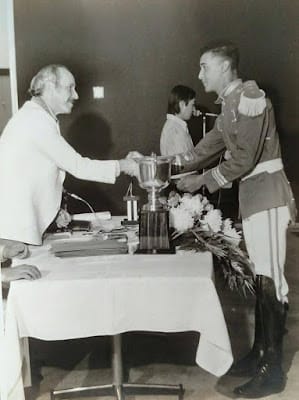 Foto Antiga Cubatão SP Reginaldo Farias (in memorian) sendo premiado representando a Banda Musical de Cubatão, na foto com o prefeito Carlos Frederico Soares Campos.