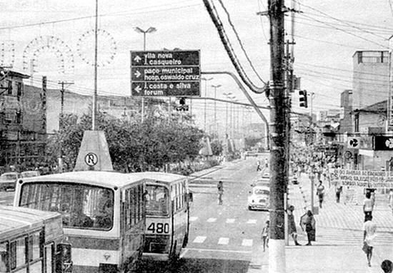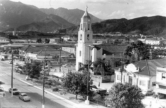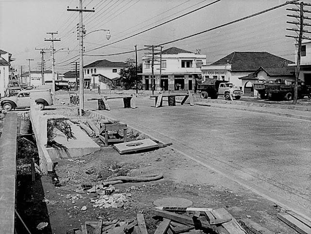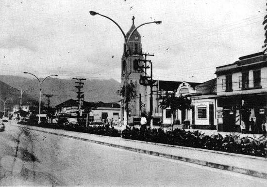 Foto Antiga Cubatão SP: Avenida 09 de Abril no centro de Cubatão por volta de 1970.