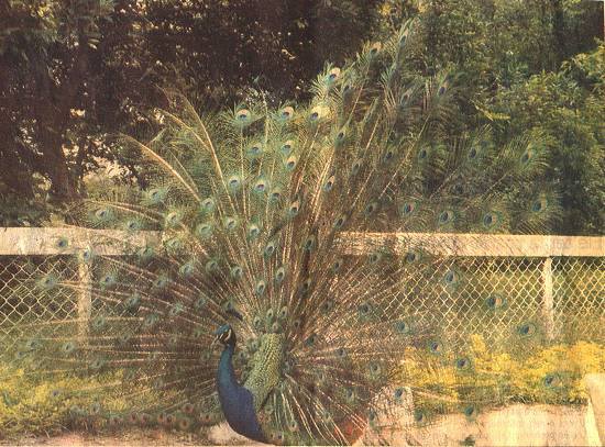 Foto Antiga Cubatão SP: Um dos 11 pavões que viviam soltos pelo Parque Cotia Pará no ano de 1999.