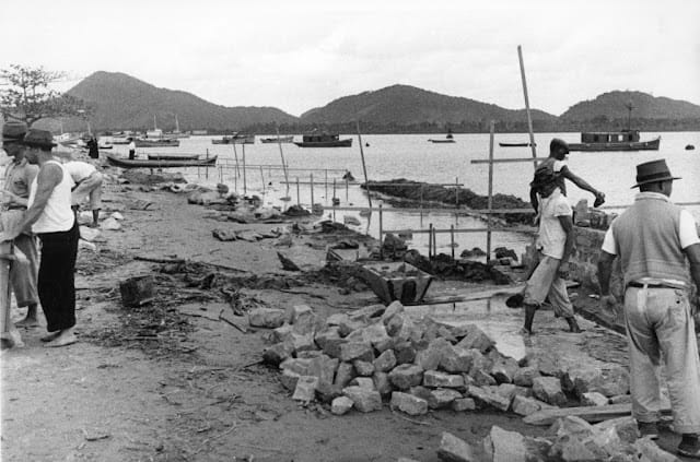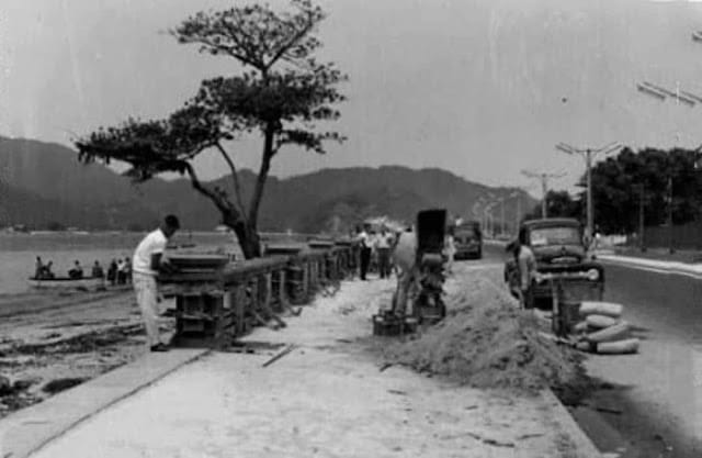 Foto Antiga Santos SP: Construção das Tradicionais Muretas (década de 50).