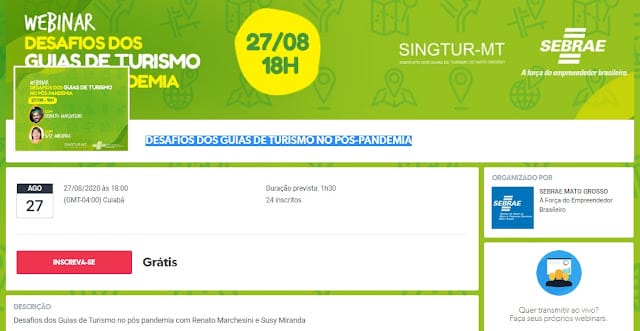 Webinar SEBRAE Mato Grosso: DESAFIOS DOS GUIAS DE TURISMO NO PÓS-PANDEMIA (27-08-2020)