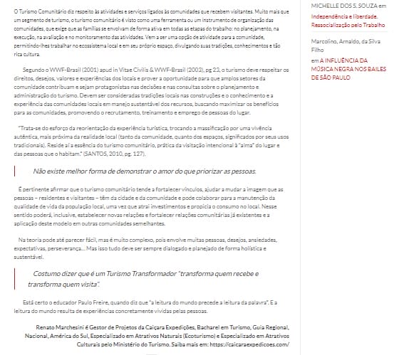 Artigo Produção Preta: Turismo Comunitário o Turismo Transformador