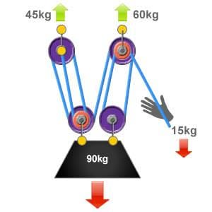 Curiosidade: esses sistemas são muitos utilizados no resgate de vitima. E visando minimizar os erros, os fabricantes desenvolveram os blocos de roldanas, formando esses sistema de vantagem mecânica, como Quick Pick da Honeywell.