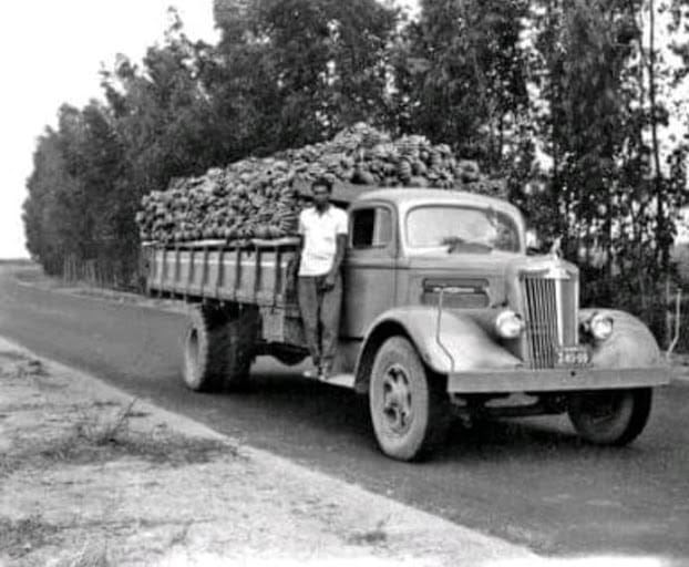 Os frutos de grande aceitação no mercado internacional seguiam por caminhões ou trens até o Porto de Santos.