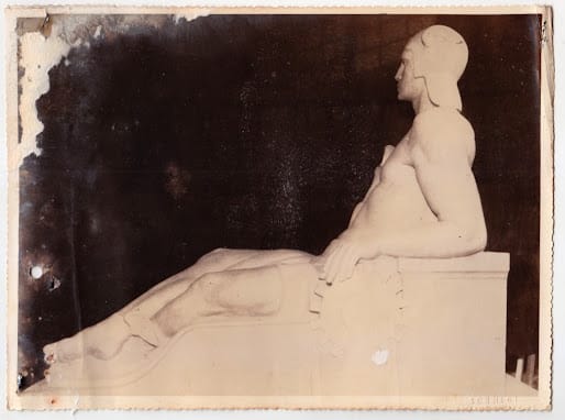 Estátua representando a Industria e Comércio, na figura lendária de Hermes (Mercúrio), o Deus Grego do Comércio. Imagens inéditas das obras no atelier de João Batista Ferri.