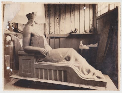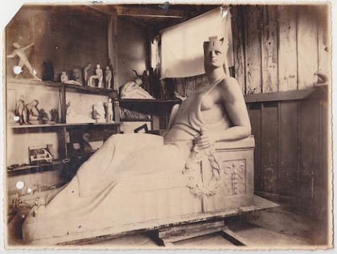 Estátua representando a Municipalidade, na figura lendária de Atena (Minerva), a Deusa Grega da Sabedoria. Imagens inéditas das obras no atelier de João Batista Ferri.